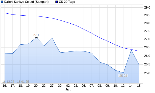 Mit dem Anstieg auf 26,43 EUR hat die Daiichi Sankyo-Aktie am 14.01.2025 die 20-Tage-Linie nach oben gekreuzt.