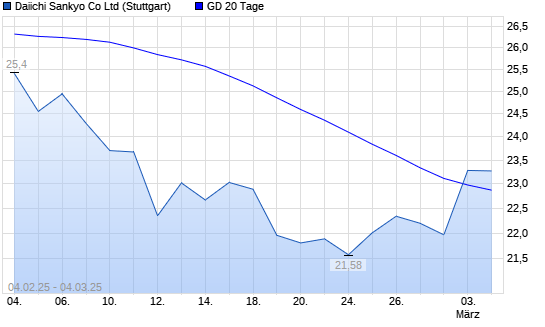 Mit dem Anstieg auf 23,40 EUR hat die Daiichi Sankyo-Aktie am 03.03.2025 die 20-Tage-Linie nach oben gekreuzt.