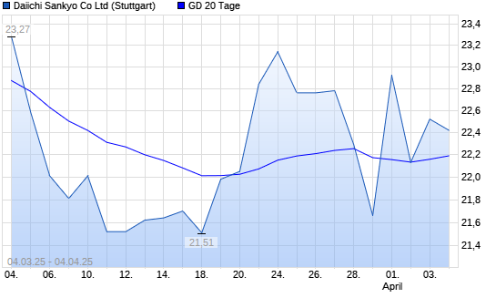 Mit dem Anstieg auf 22,32 EUR hat die Daiichi Sankyo-Aktie am 03.04.2025 die 20-Tage-Linie nach oben gekreuzt.