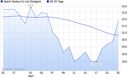 Mit dem Anstieg auf 20,79 EUR hat die Daiichi Sankyo-Aktie am 24.04.2025 die 20-Tage-Linie nach oben gekreuzt.