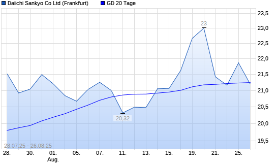 Mit dem Anstieg auf 21,86 EUR hat die Daiichi Sankyo-Aktie am 25.08.2025 die 20-Tage-Linie nach oben gekreuzt.