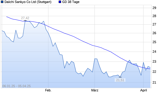 Mit dem Anstieg auf 22,33 EUR hat die Daiichi Sankyo-Aktie am 04.04.2025 die 38-Tage-Linie nach oben gekreuzt.