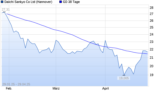 Mit dem Rücksetzer auf 21,23 EUR hat die Daiichi Sankyo-Aktie am 28.04.2025 die 38-Tage-Linie nach unten gekreuzt.