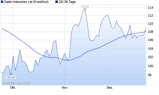 Mit dem Anstieg auf 108,75 EUR hat die Daikin Industries-Aktie am 23.12.2025 die 38-Tage-Linie nach oben gekreuzt.