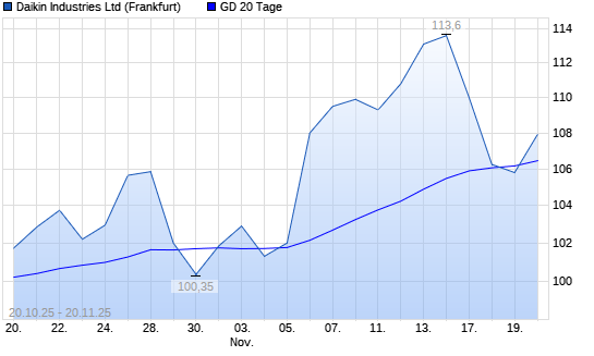 Mit dem Rücksetzer auf 105,80 EUR hat die Daikin Industries-Aktie am 19.11.2025 die 20-Tage-Linie nach unten gekreuzt.