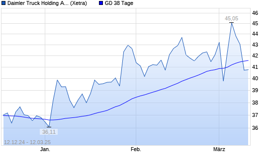 Mit dem Rücksetzer auf 41,29 EUR hat die Daimler Truck-Aktie am 11.03.2025 die 38-Tage-Linie nach unten gekreuzt.