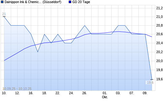 Mit dem Rücksetzer auf 20,80 EUR hat die Dainippon Ink & Chemicals-Aktie am 09.10.2025 die 20-Tage-Linie nach unten gekreuzt.