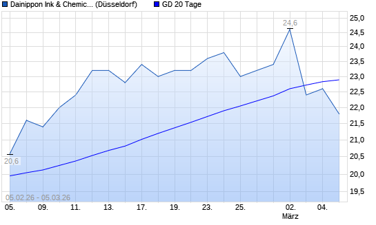 Mit dem Rücksetzer auf 22,20 EUR hat die Dainippon Ink & Chemicals-Aktie am 04.03.2026 die 20-Tage-Linie nach unten gekreuzt.