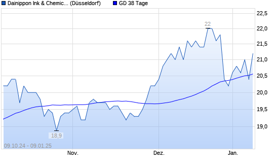 Mit dem Rücksetzer auf 20,80 EUR hat die Dainippon Ink & Chemicals-Aktie am 08.01.2025 die 38-Tage-Linie nach unten gekreuzt.