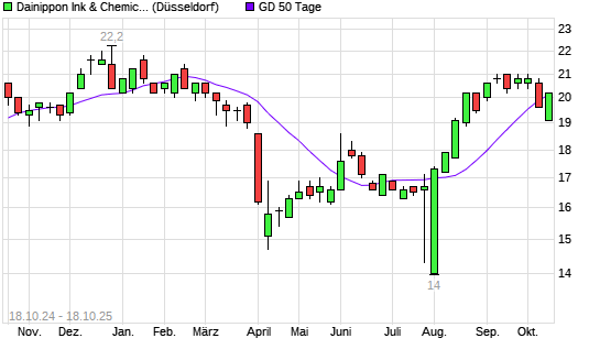Mit dem Rücksetzer auf 20,20 EUR hat die Dainippon Ink & Chemicals-Aktie am 17.10.2025 die 50-Tage-Linie nach unten gekreuzt.