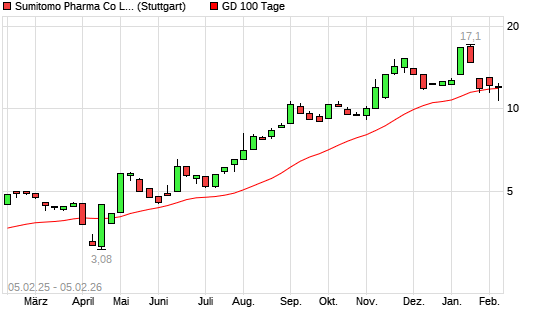 Mit dem Anstieg auf 12,20 EUR hat die Dainippon Sumitomo Pharma-Aktie am 04.02.2026 die 100-Tage-Linie nach oben gekreuzt.