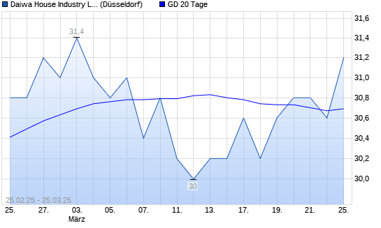 Mit dem Anstieg auf 31,60 EUR hat die Daiwa House Industry-Aktie am 24.03.2025 die 20-Tage-Linie nach oben gekreuzt.