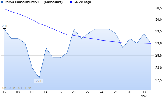 Mit dem Anstieg auf 29,20 EUR hat die Daiwa House Industry-Aktie am 03.11.2025 die 20-Tage-Linie nach oben gekreuzt.