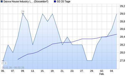 Mit dem Anstieg auf 28,80 EUR hat die Daiwa House Industry-Aktie am 04.02.2026 die 20-Tage-Linie nach oben gekreuzt.