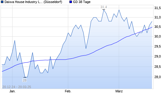 Mit dem Anstieg auf 30,80 EUR hat die Daiwa House Industry-Aktie am 19.03.2025 die 38-Tage-Linie nach oben gekreuzt.