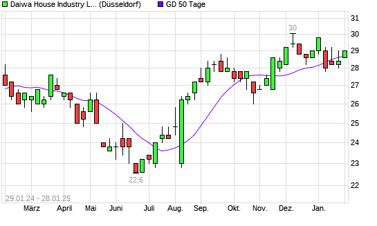 Mit dem Anstieg auf 29,40 EUR hat die Daiwa House Industry-Aktie am 27.01.2025 die 50-Tage-Linie nach oben gekreuzt.