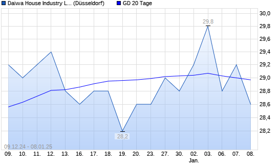Mit dem Rücksetzer auf 29,40 EUR hat die Daiwa House Industry-Aktie am 07.01.2025 die 20-Tage-Linie nach unten gekreuzt.