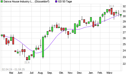 Mit dem Rücksetzer auf 30,40 EUR hat die Daiwa House Industry-Aktie am 31.03.2025 die 50-Tage-Linie nach unten gekreuzt.