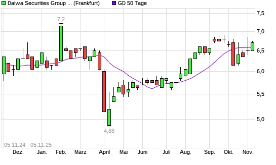 Mit dem Anstieg auf 6,75 EUR hat die Daiwa Securities Group-Aktie am 04.11.2025 die 50-Tage-Linie nach oben gekreuzt.