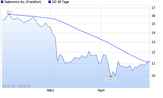 Mit dem Anstieg auf 11,24 EUR hat die Daktronics-Aktie am 02.05.2025 die 38-Tage-Linie nach oben gekreuzt.