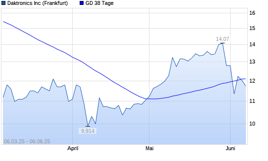 Mit dem Rücksetzer auf 12,03 EUR hat die Daktronics-Aktie am 05.06.2025 die 38-Tage-Linie nach unten gekreuzt.