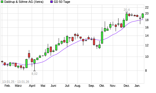 Mit dem Anstieg auf 19,80 EUR hat die Daldrup & Söhne-Aktie am 12.01.2026 die 50-Tage-Linie nach oben gekreuzt.