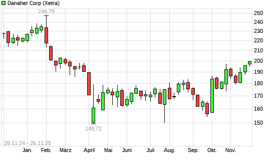 Mit dem Anstieg auf 200,05 EUR hat die Danaher-Aktie (ISIN US2358511028) am 25.11.2025 ein neues 6-Monats-Hoch erreicht und damit den Kurs vom 24.11.2025 eingestellt.