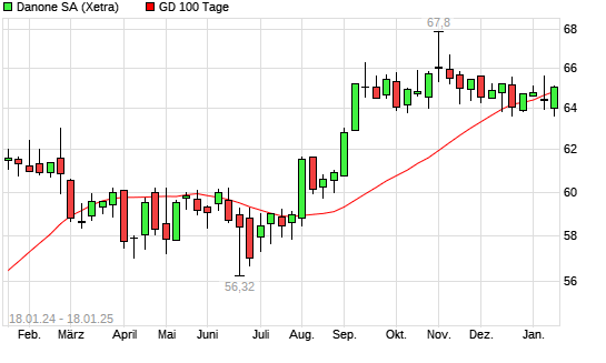 Mit dem Anstieg auf 64,88 EUR hat die Danone-Aktie am 17.01.2025 die 100-Tage-Linie nach oben gekreuzt.
