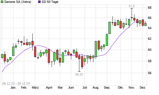Mit dem Anstieg auf 65,04 EUR hat die Danone-Aktie am 05.12.2024 die 50-Tage-Linie nach oben gekreuzt.