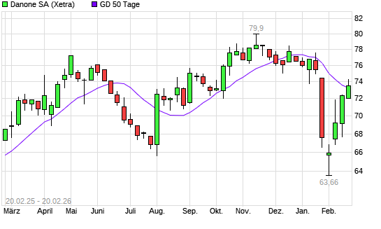 Mit dem Anstieg auf 73,48 EUR hat die Danone-Aktie am 19.02.2026 die 50-Tage-Linie nach oben gekreuzt.