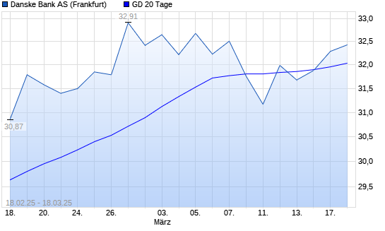 Mit dem Anstieg auf 32,29 EUR hat die Danske Bank-Aktie am 17.03.2025 die 20-Tage-Linie nach oben gekreuzt.