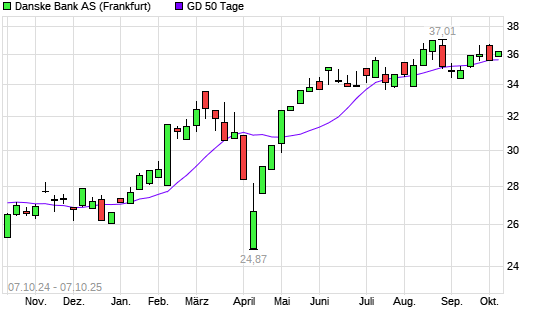 Mit dem Anstieg auf 36,24 EUR hat die Danske Bank-Aktie am 06.10.2025 die 50-Tage-Linie nach oben gekreuzt.