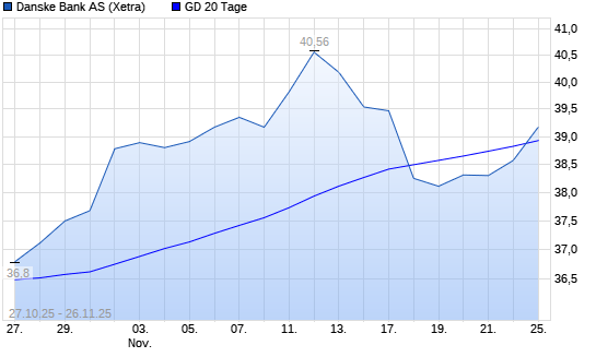 Mit dem Rücksetzer auf 38,37 EUR hat die Danske Bank-Aktie am 25.11.2025 die 20-Tage-Linie nach unten gekreuzt.