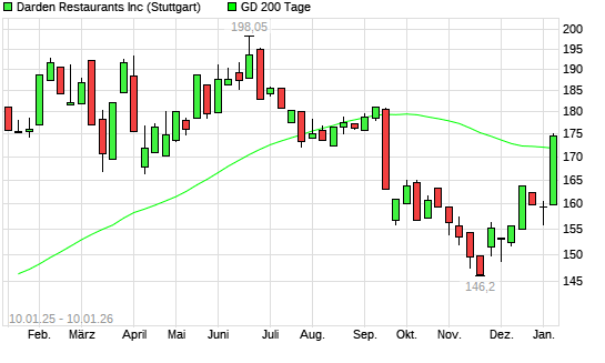 Mit dem Anstieg auf 173,00 EUR hat die Darden Restaurants-Aktie am 09.01.2026 die 200-Tage-Linie nach oben gekreuzt.
