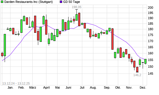 Mit dem Anstieg auf 155,35 EUR hat die Darden Restaurants-Aktie am 12.12.2025 die 50-Tage-Linie nach oben gekreuzt.