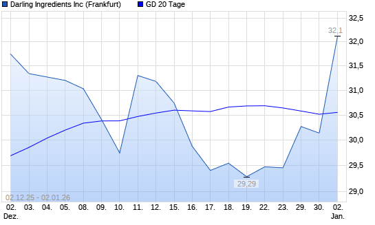 Mit dem Anstieg auf 30,14 EUR hat die Darling Ingredients-Aktie am 01.01.2026 die 20-Tage-Linie nach oben gekreuzt.