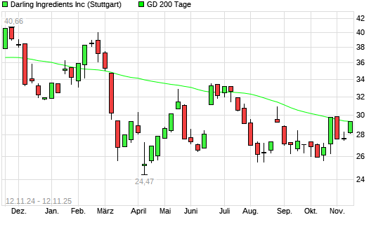 Mit dem Anstieg auf 29,52 EUR hat die Darling Ingredients-Aktie am 11.11.2025 die 200-Tage-Linie nach oben gekreuzt.