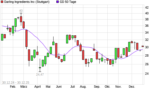 Mit dem Anstieg auf 30,27 EUR hat die Darling Ingredients-Aktie am 29.12.2025 die 50-Tage-Linie nach oben gekreuzt.