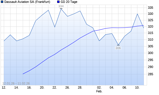 Mit dem Anstieg auf 330,00 EUR hat die Dassault Aviation-Aktie am 10.02.2026 die 20-Tage-Linie nach oben gekreuzt.
