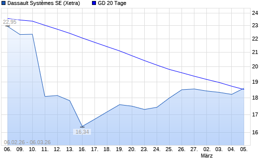 Mit dem Anstieg auf 18,55 EUR hat die Dassault Systèmes-Aktie am 05.03.2026 die 20-Tage-Linie nach oben gekreuzt.