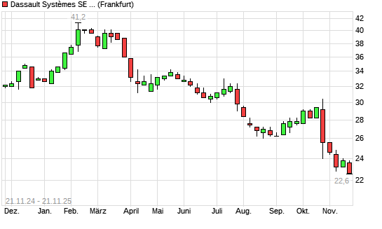 Mit dem Rücksetzer auf 22,80 EUR hat die Dassault Systemes ADR-Aktie (ISIN US2375451083) am 20.11.2025 ein neues 5-Jahres-Tief erreicht und damit den Kurs vom 18.11.2025 eingestellt.