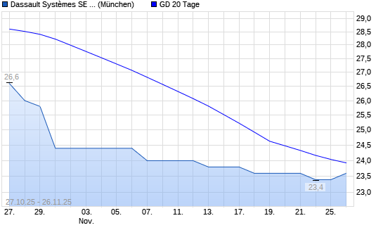 Mit dem Anstieg auf 24,00 EUR hat die Dassault Systemes ADR-Aktie am 25.11.2025 die 20-Tage-Linie nach oben gekreuzt.
