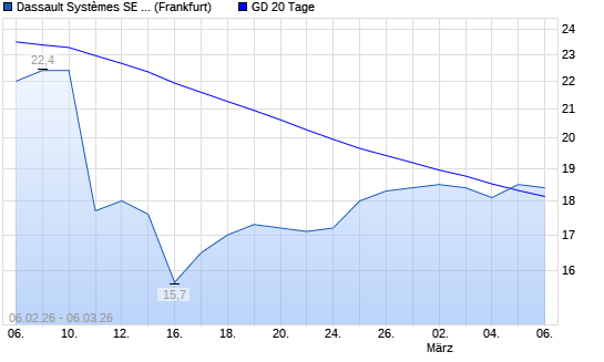 Mit dem Anstieg auf 18,50 EUR hat die Dassault Systemes ADR-Aktie am 05.03.2026 die 20-Tage-Linie nach oben gekreuzt.Die Dassault Systemes ADR-Aktie befindet sich seit dem 03.04.2025 ...weiterlesen