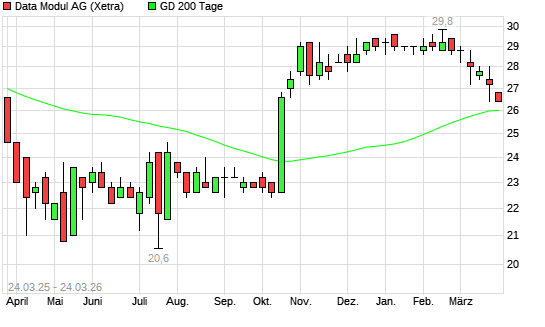 Mit dem Anstieg auf 26,40 EUR hat die Data Modul-Aktie am 23.03.2026 die 200-Tage-Linie nach oben gekreuzt.