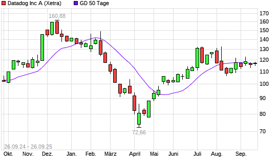Mit dem Anstieg auf 117,20 EUR hat die Datadog-Aktie am 25.09.2025 die 50-Tage-Linie nach oben gekreuzt.