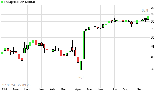 Mit dem Anstieg auf 62,90 EUR hat die Datagroup-Aktie (ISIN DE000A0JC8S7) am 26.09.2025 ein neues 12-Monats-Hoch erreicht und damit den Kurs vom 24.09.2025 eingestellt.