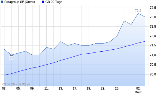 Mit dem Rücksetzer auf 71,00 EUR hat die Datagroup-Aktie am 02.03.2026 die 20-Tage-Linie nach unten gekreuzt.