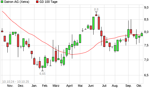 Mit dem Anstieg auf 7,80 EUR hat die Datron-Aktie am 09.10.2025 die 100-Tage-Linie nach oben gekreuzt.