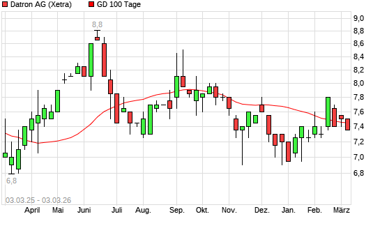 Mit dem Anstieg auf 7,35 EUR hat die Datron-Aktie am 02.03.2026 die 100-Tage-Linie nach oben gekreuzt.
