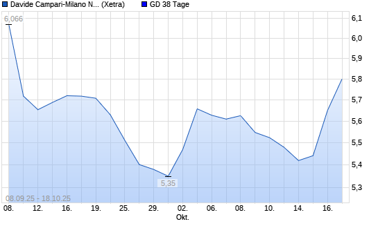 Mit dem Anstieg auf 5,71 EUR hat die Davide Campari-Milano-Aktie am 17.10.2025 die 38-Tage-Linie nach oben gekreuzt.